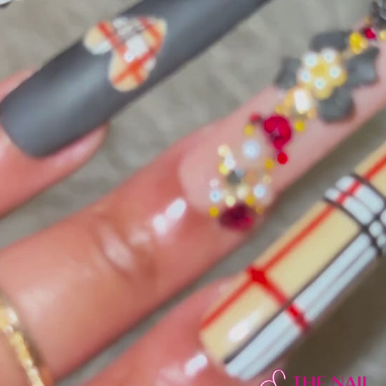 This set is 100% hand-made, painted and made to order. The Nail Engineer press-on sets are made of salon quality acrylic and gel, making getting your nails done convenient at the most affordable price!