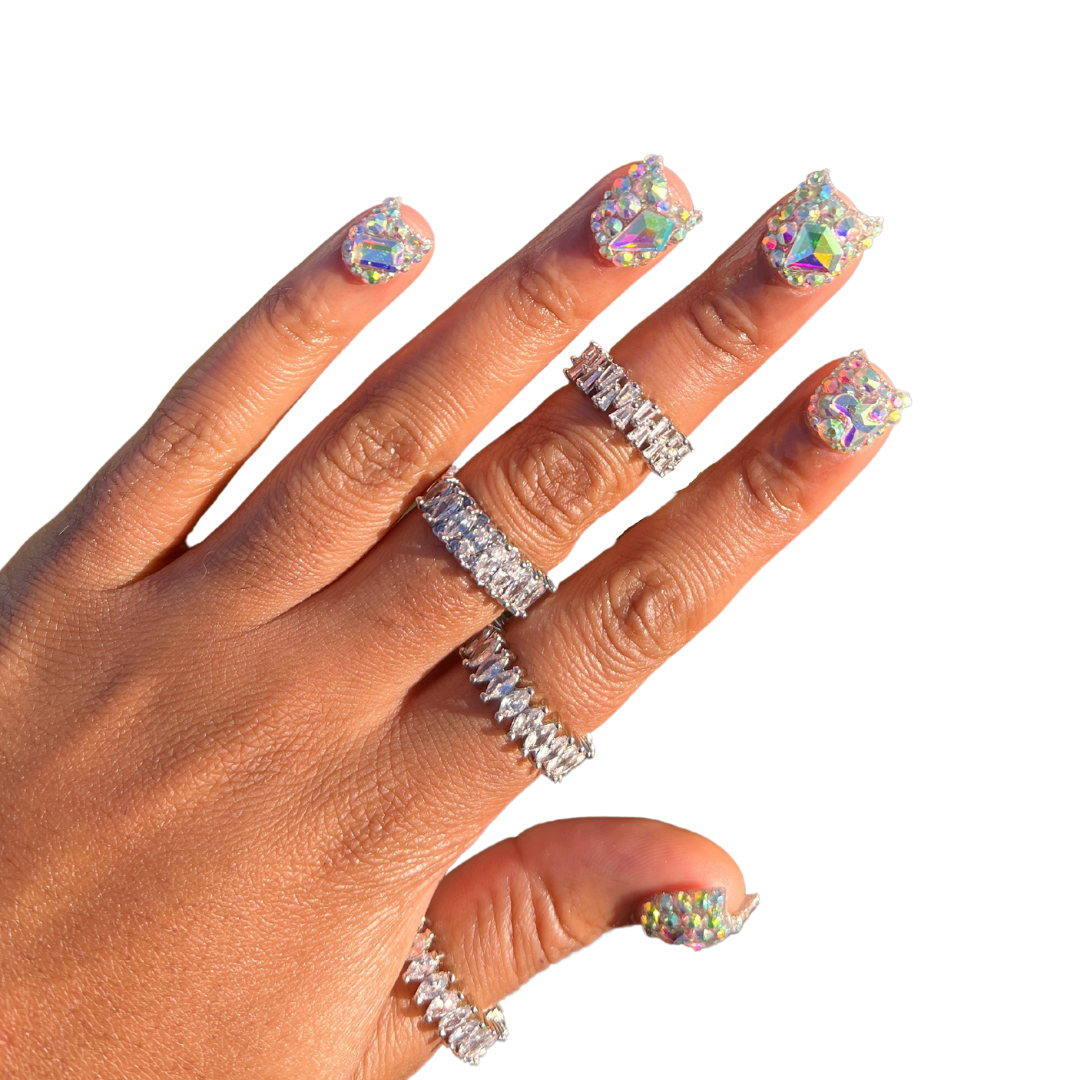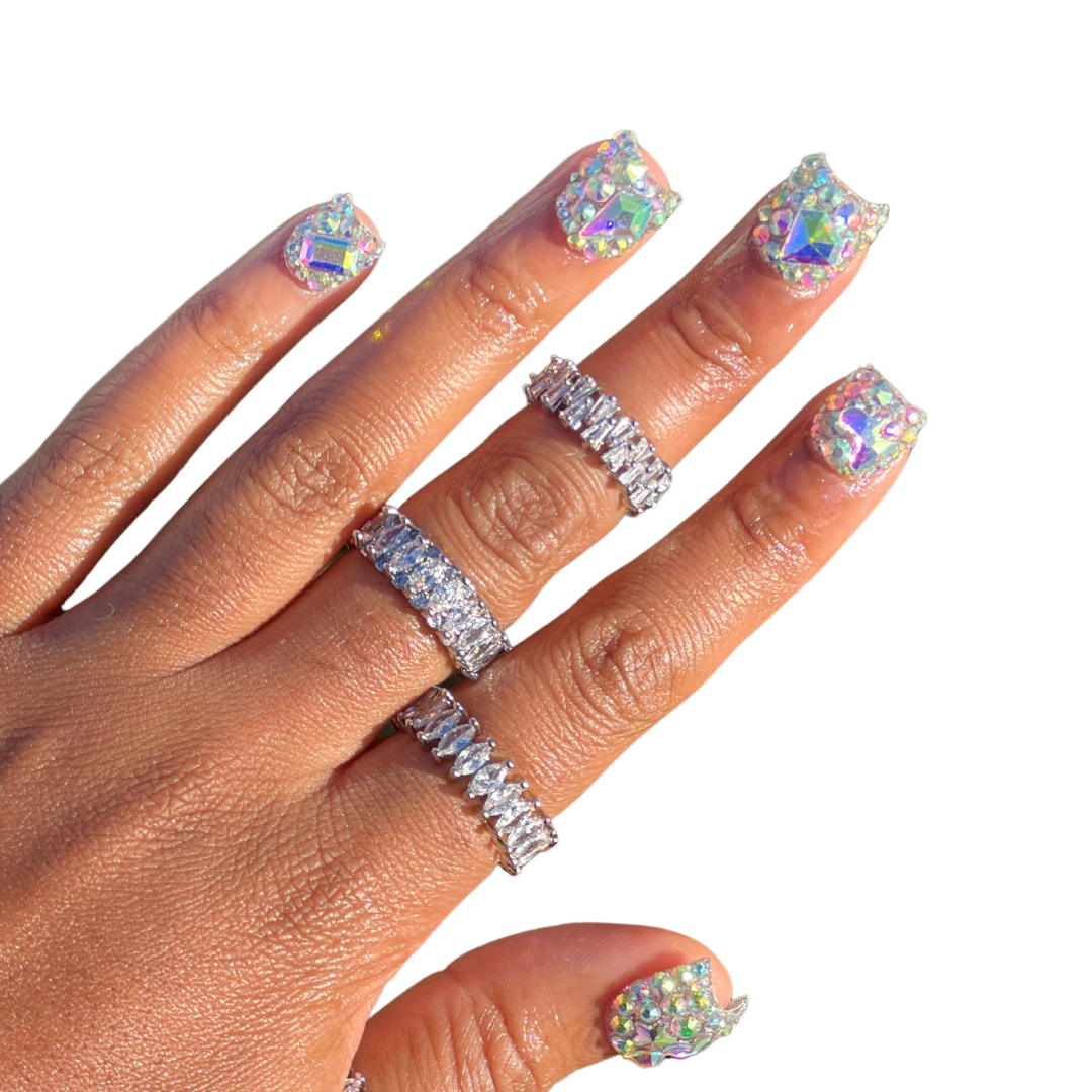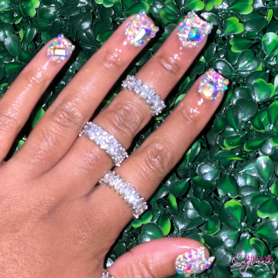 This full bling set is perfect for the material girls. It has a reflective glitter base and full bling designs with various AB crystal shapes.