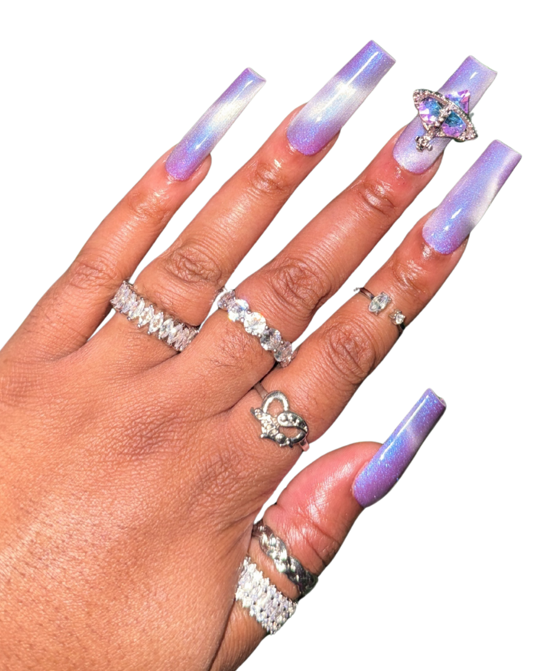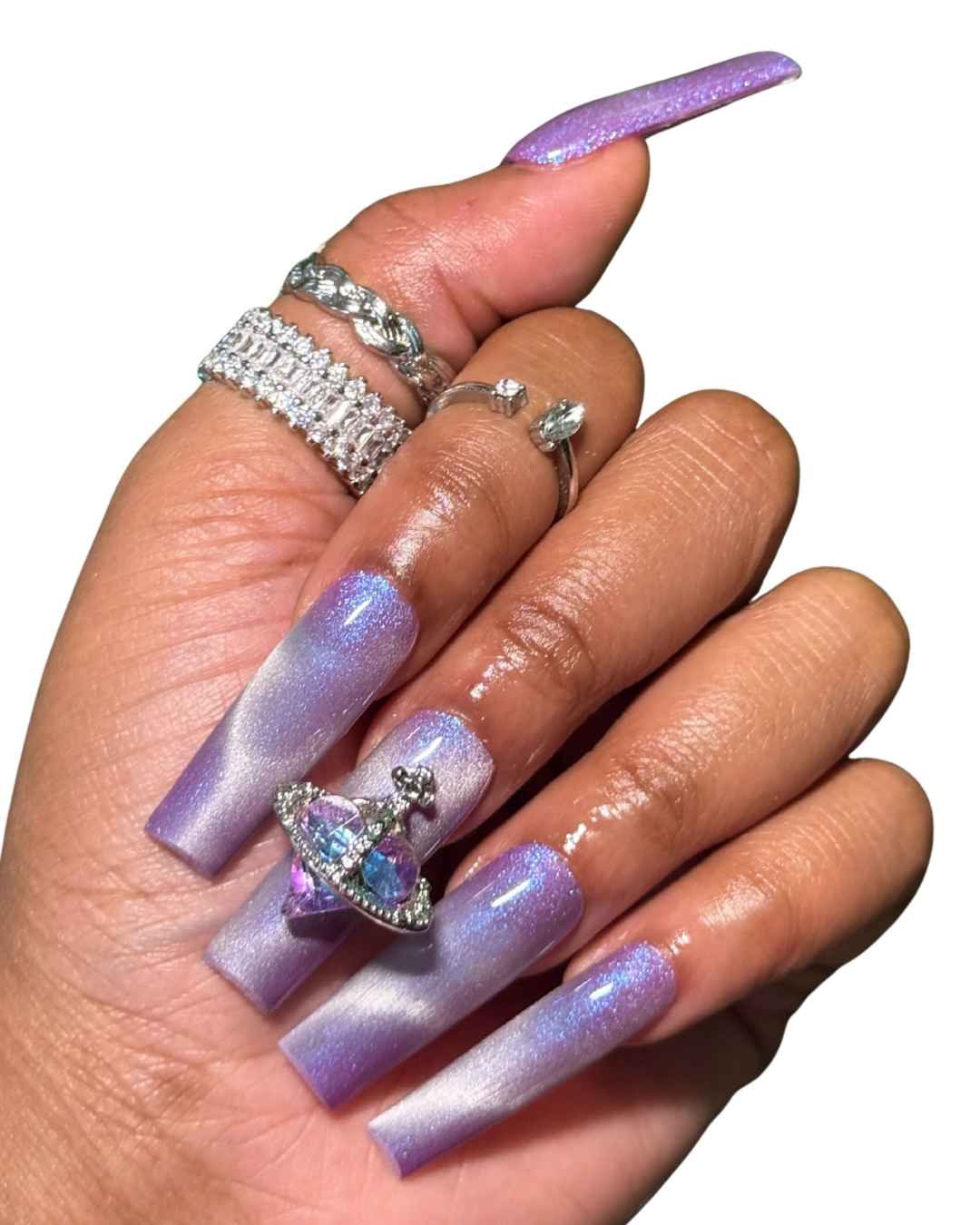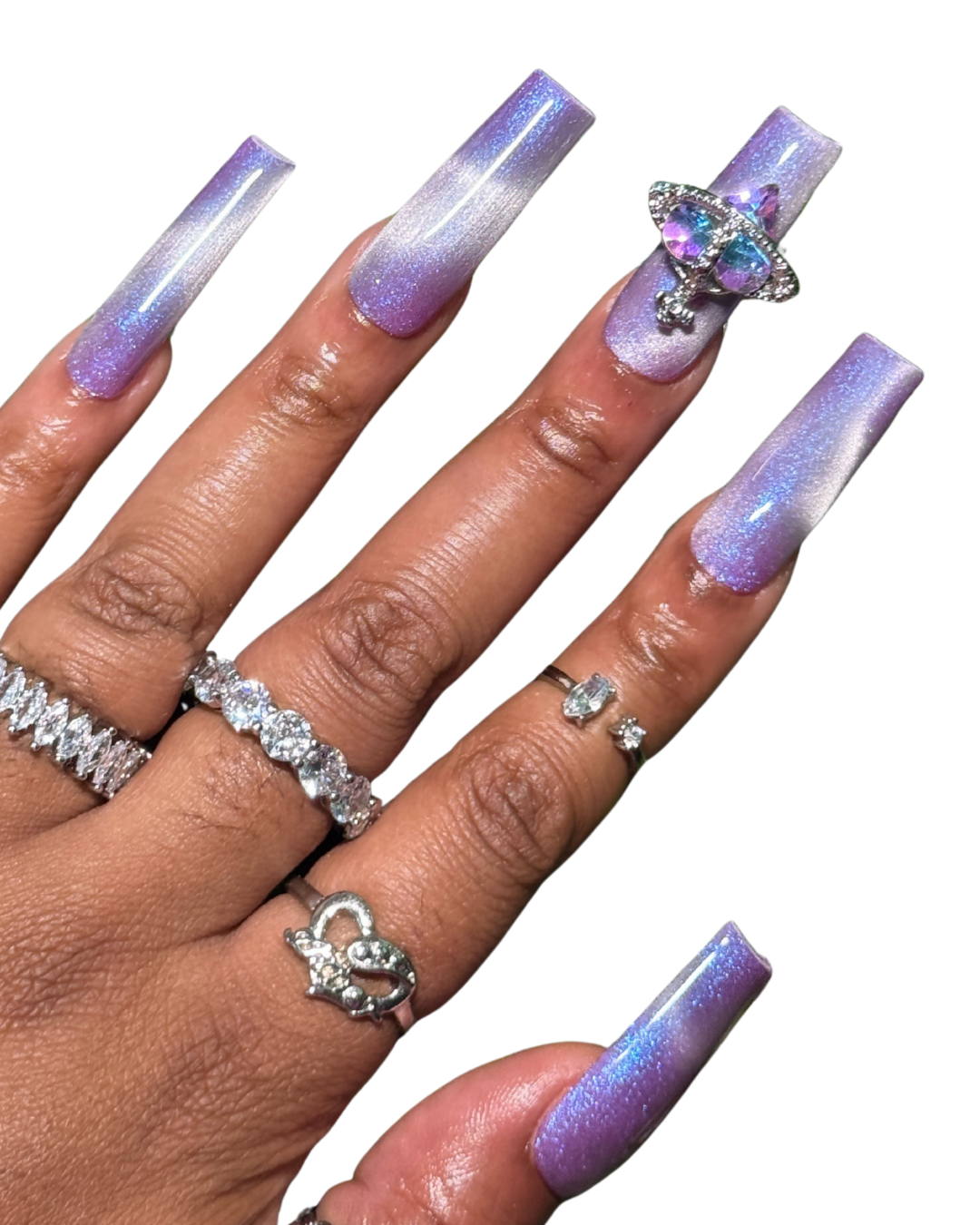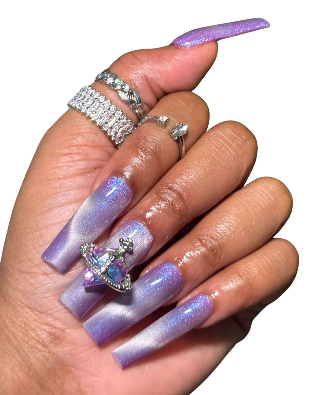 - 8 cat-eye press-on nails, 2 cat-eye press-on nails with bling charm