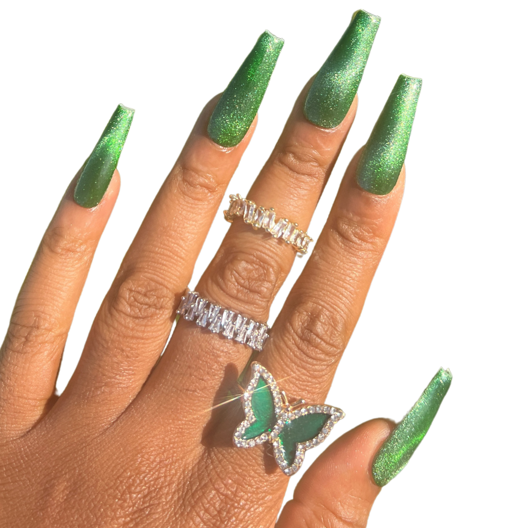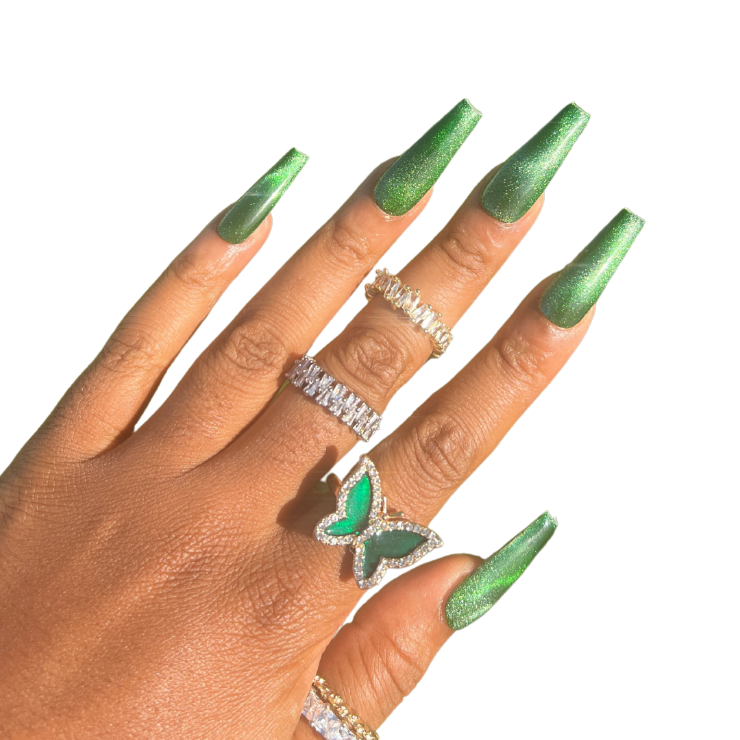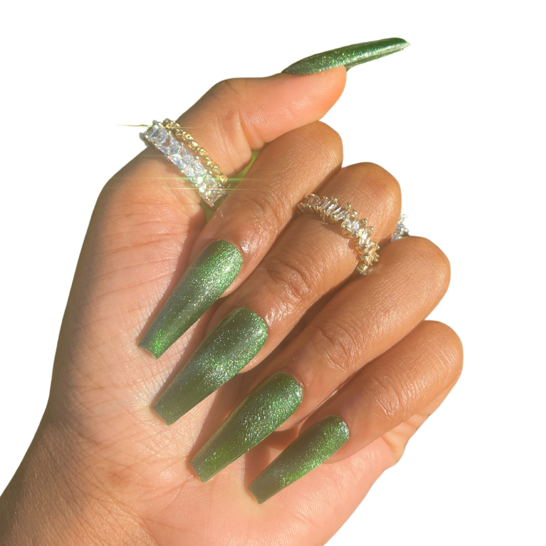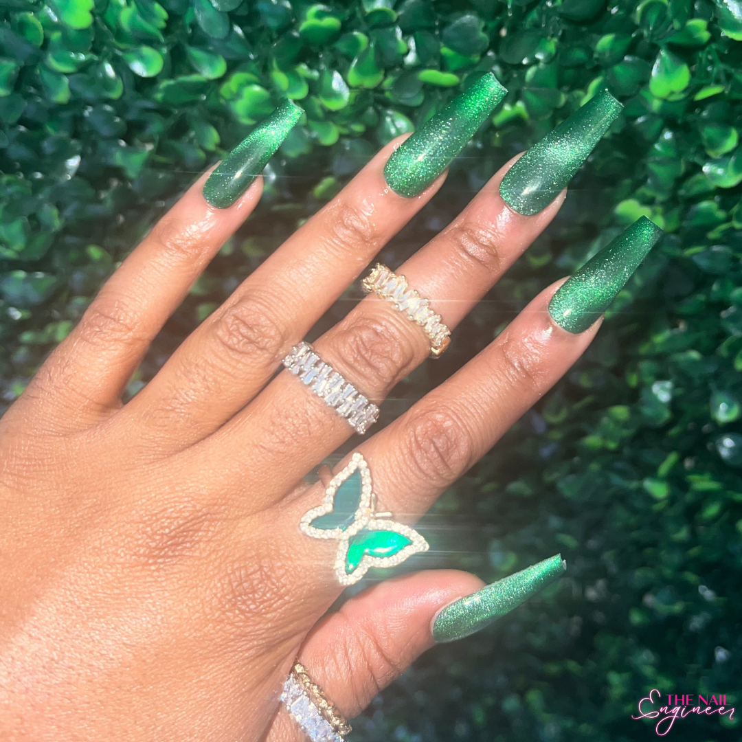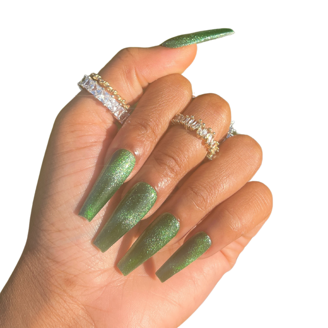 - 10 deep green cat eye nails