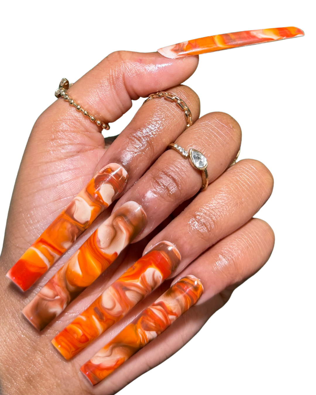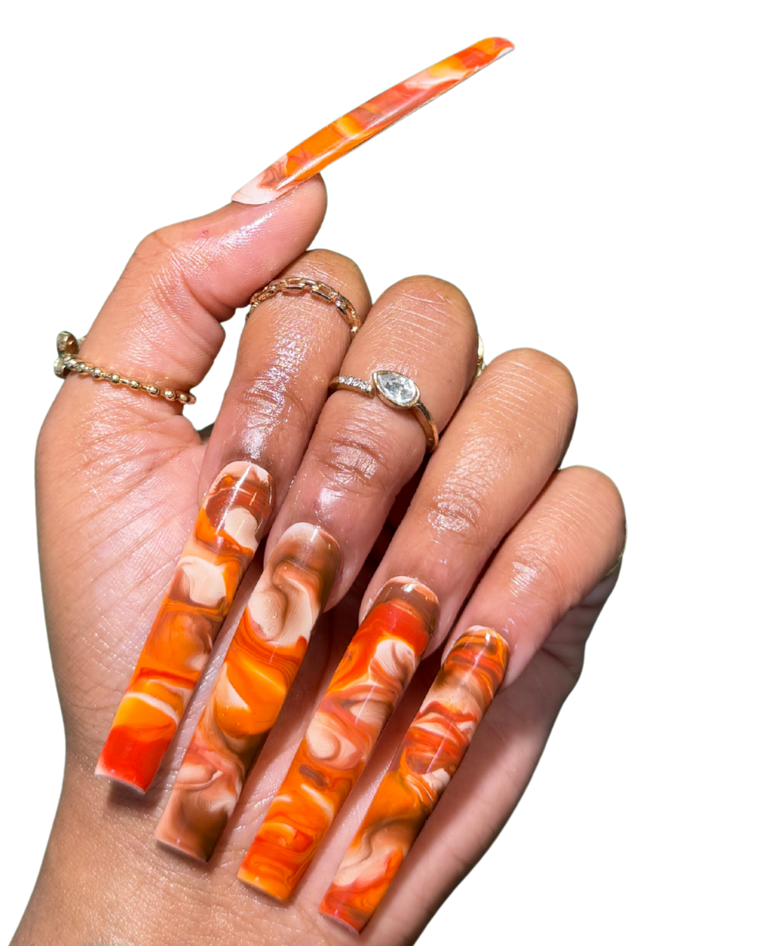 Beautiful fall marble featuring shades of orange and brown on a soft cream base.