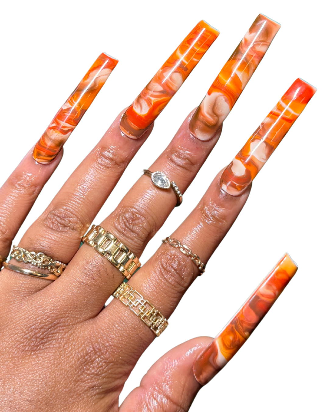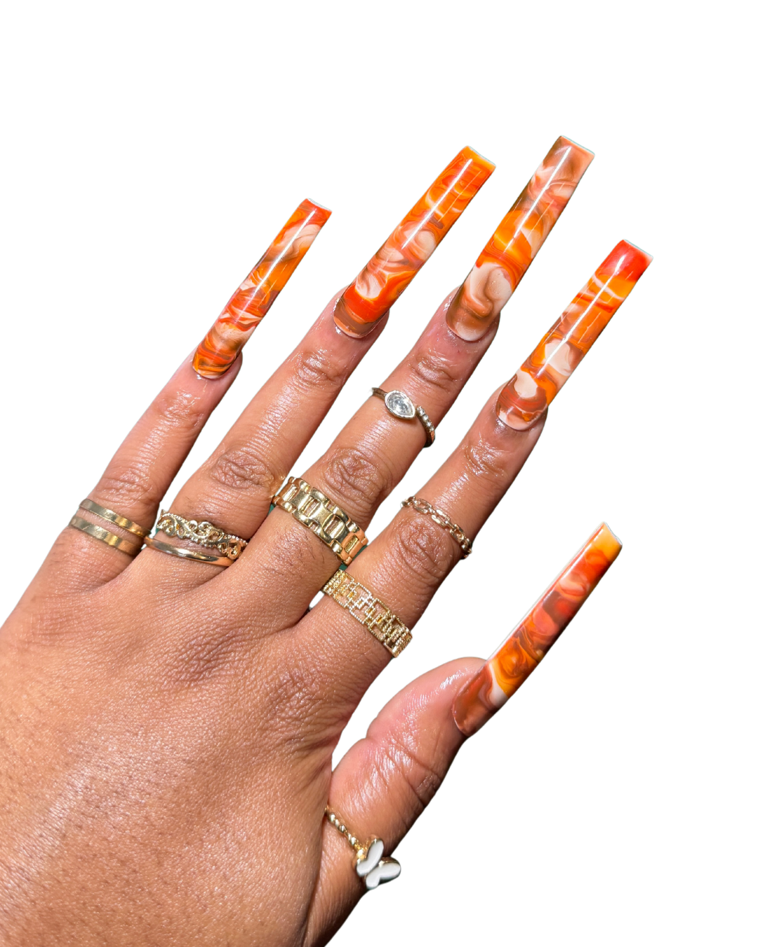 This set is 100% hand-made, painted and made to order. The Nail Engineer press-on sets are hand-crafted using salon quality acrylic and/or gel polish, supplying luxury nails at your convenience!
