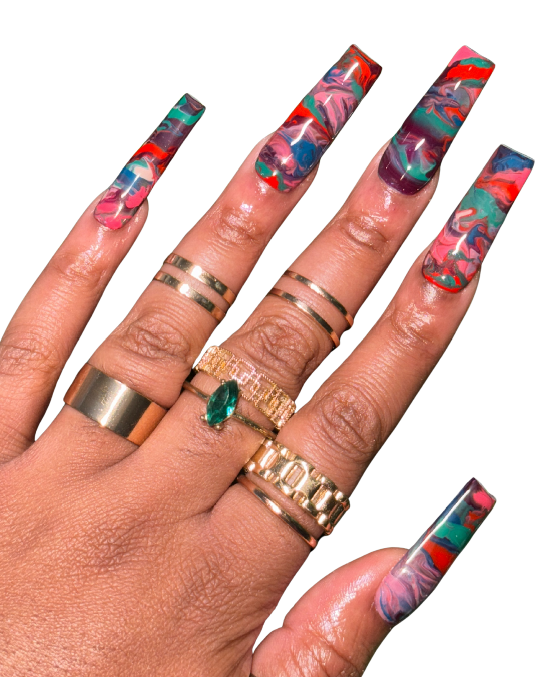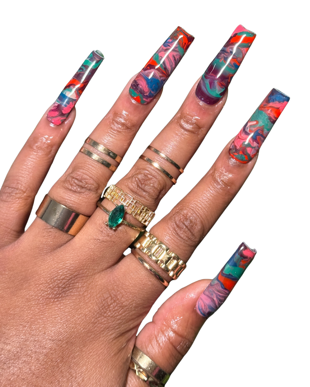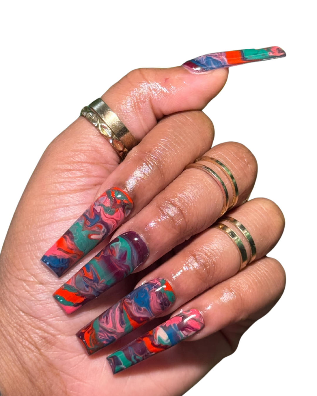 This set is 100% hand-made, painted and made to order. The Nail Engineer press-on sets are hand-crafted using salon quality acrylic and/or gel polish, supplying luxury nails at your convenience!