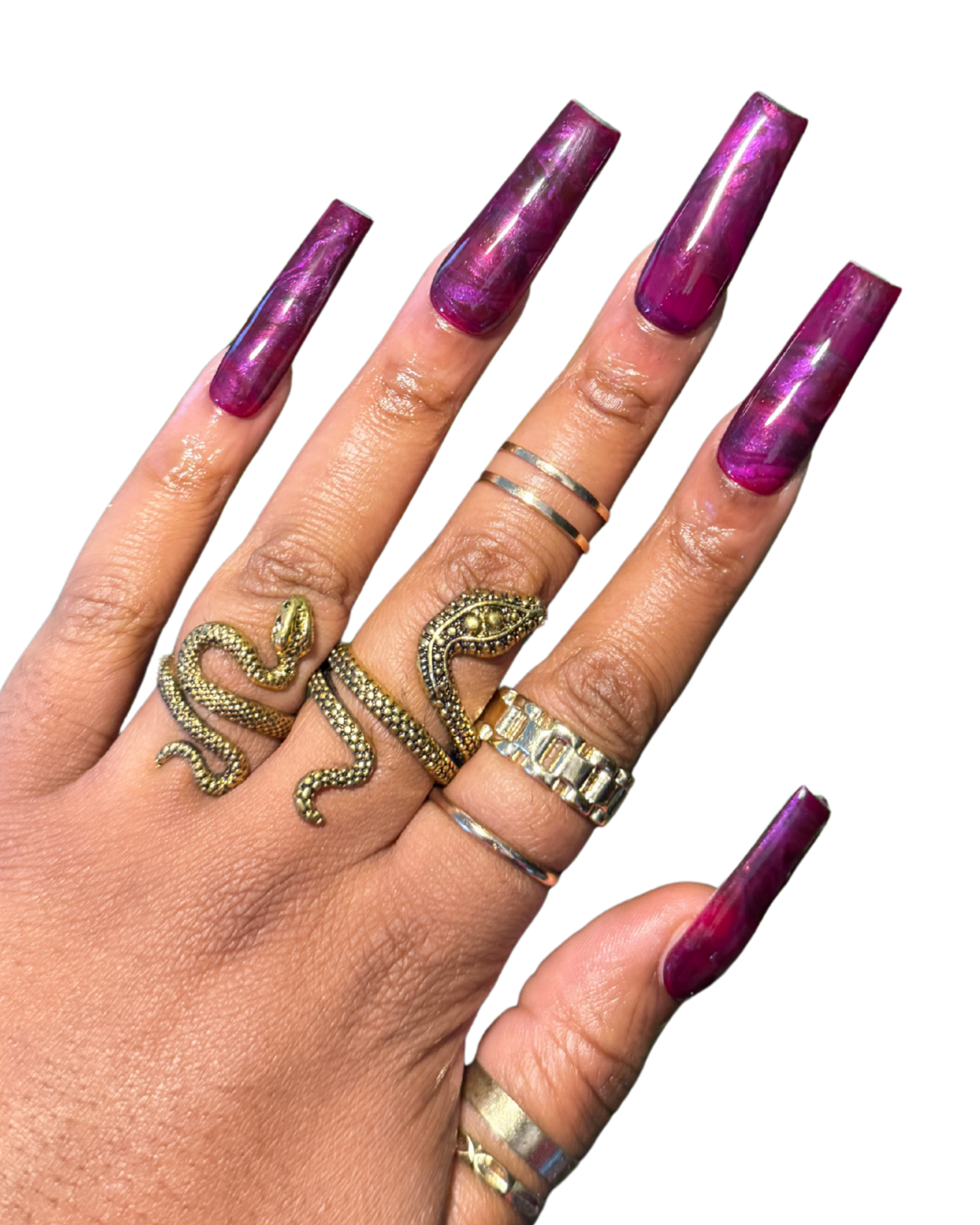 This set is 100% hand-made, painted and made to order. The Nail Engineer press-on sets are hand-crafted using salon quality acrylic and/or gel polish, supplying luxury nails at your convenience!