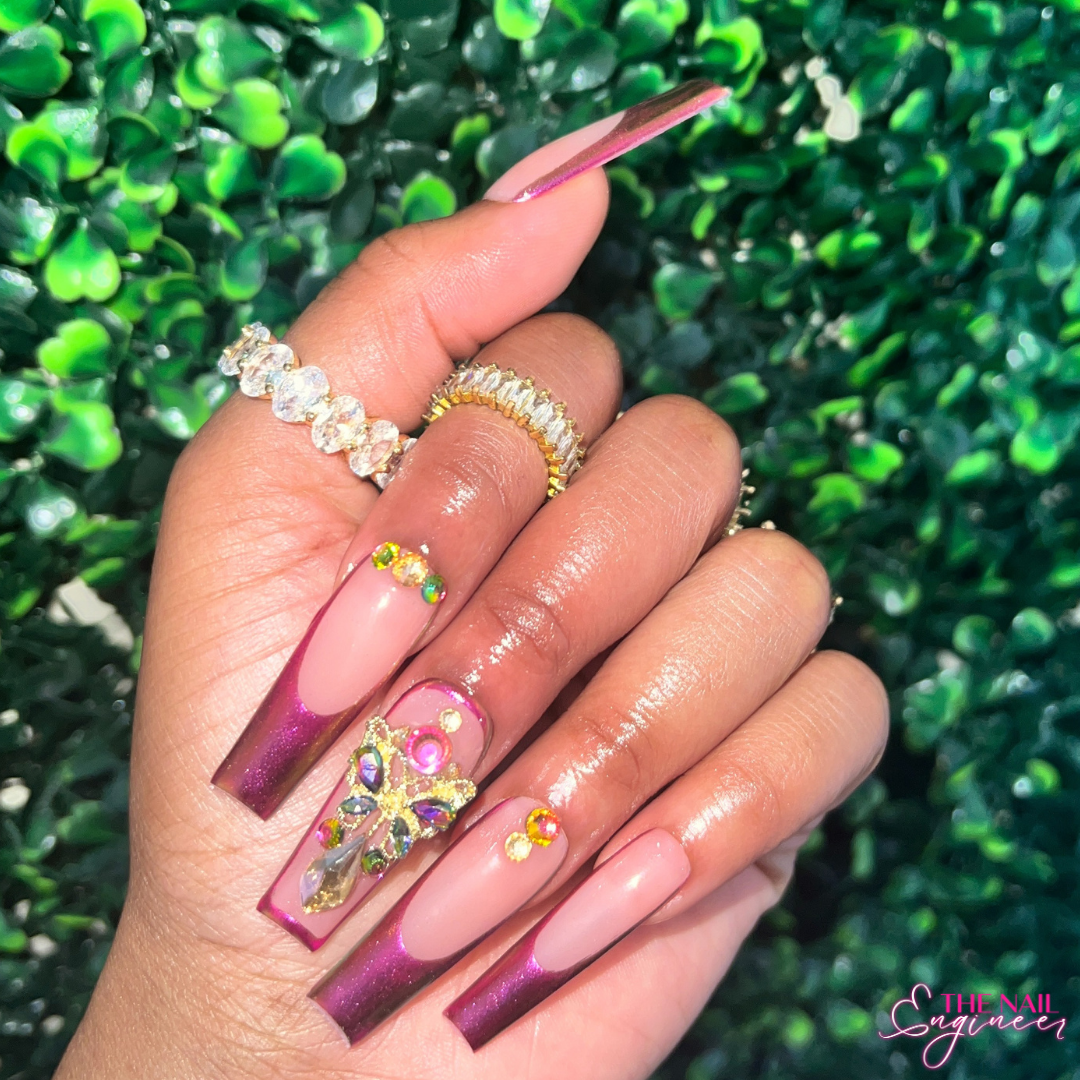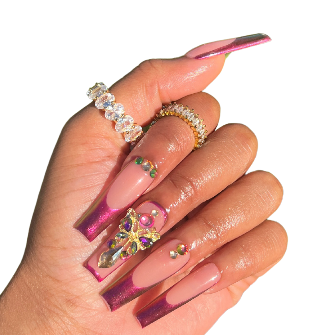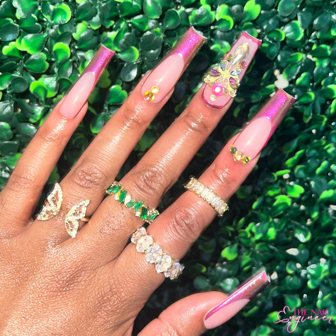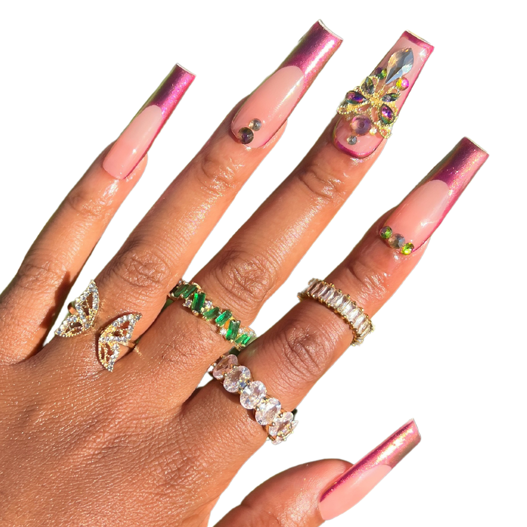 Chameleon chrome french-tips with chameleon butterfly bling mix.
