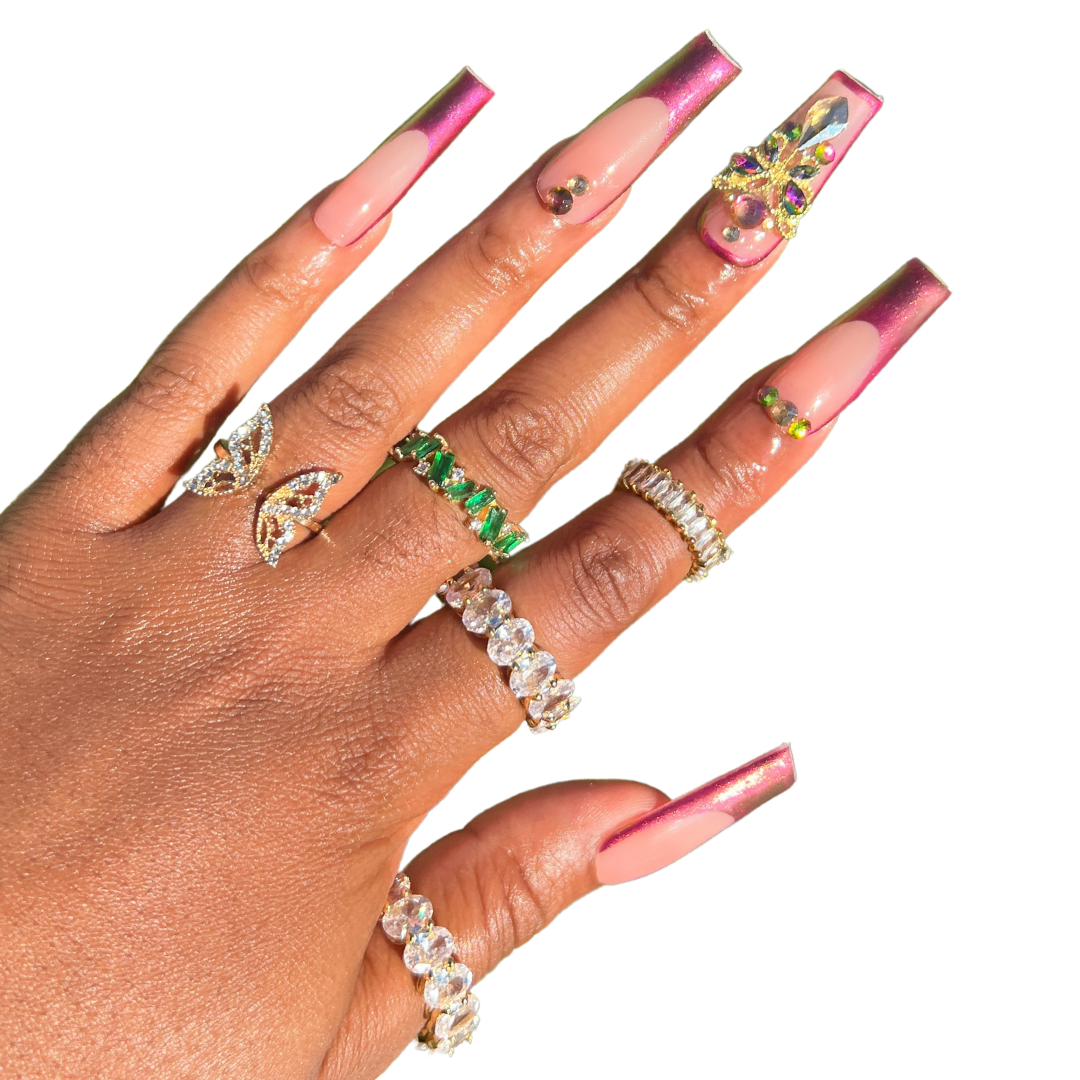 - 2 french-tip nails with luxe bling, 4 french-tip nails with cuticle bling, 4 french-tip nails