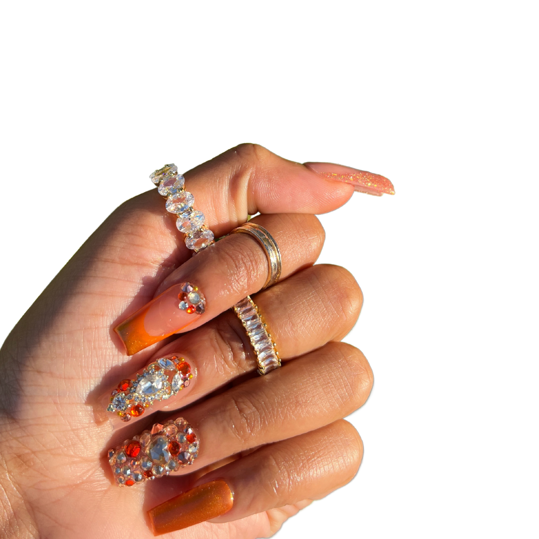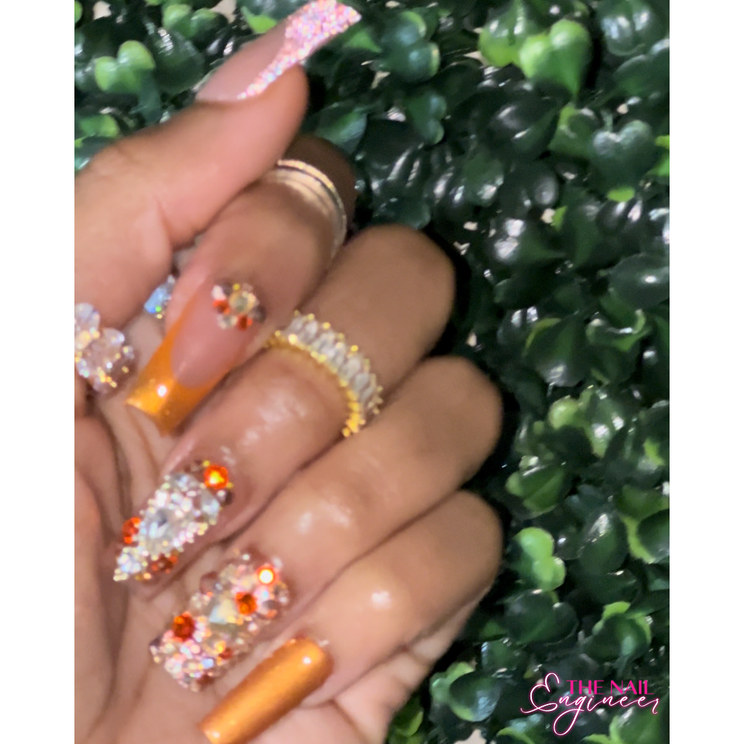 This set is 100% hand-made, painted and made to order. The Nail Engineer press-on sets are made of salon quality acrylic and gel, making getting your nails done convenient at the most affordable price!