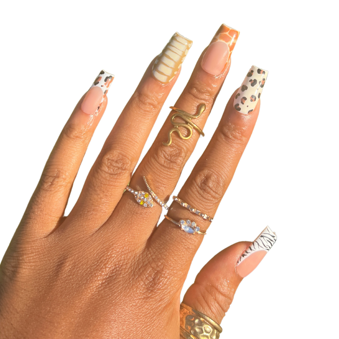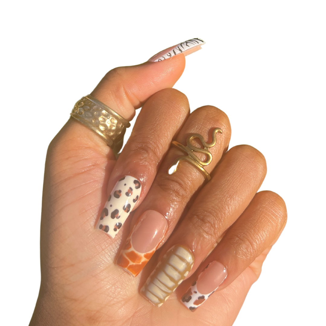 - 5 animal print nails, 5 animal print french tip nails (this is a freestyle set!)