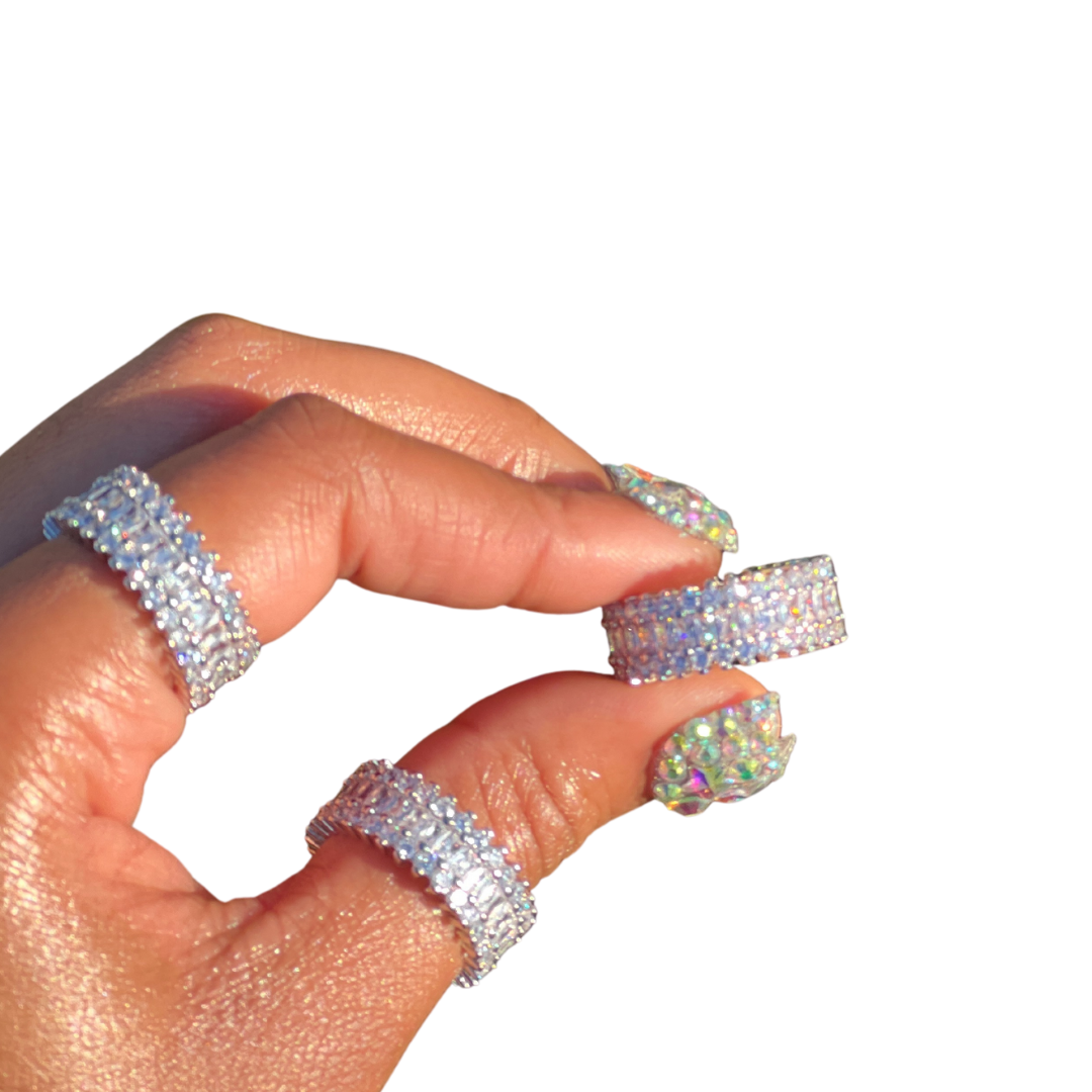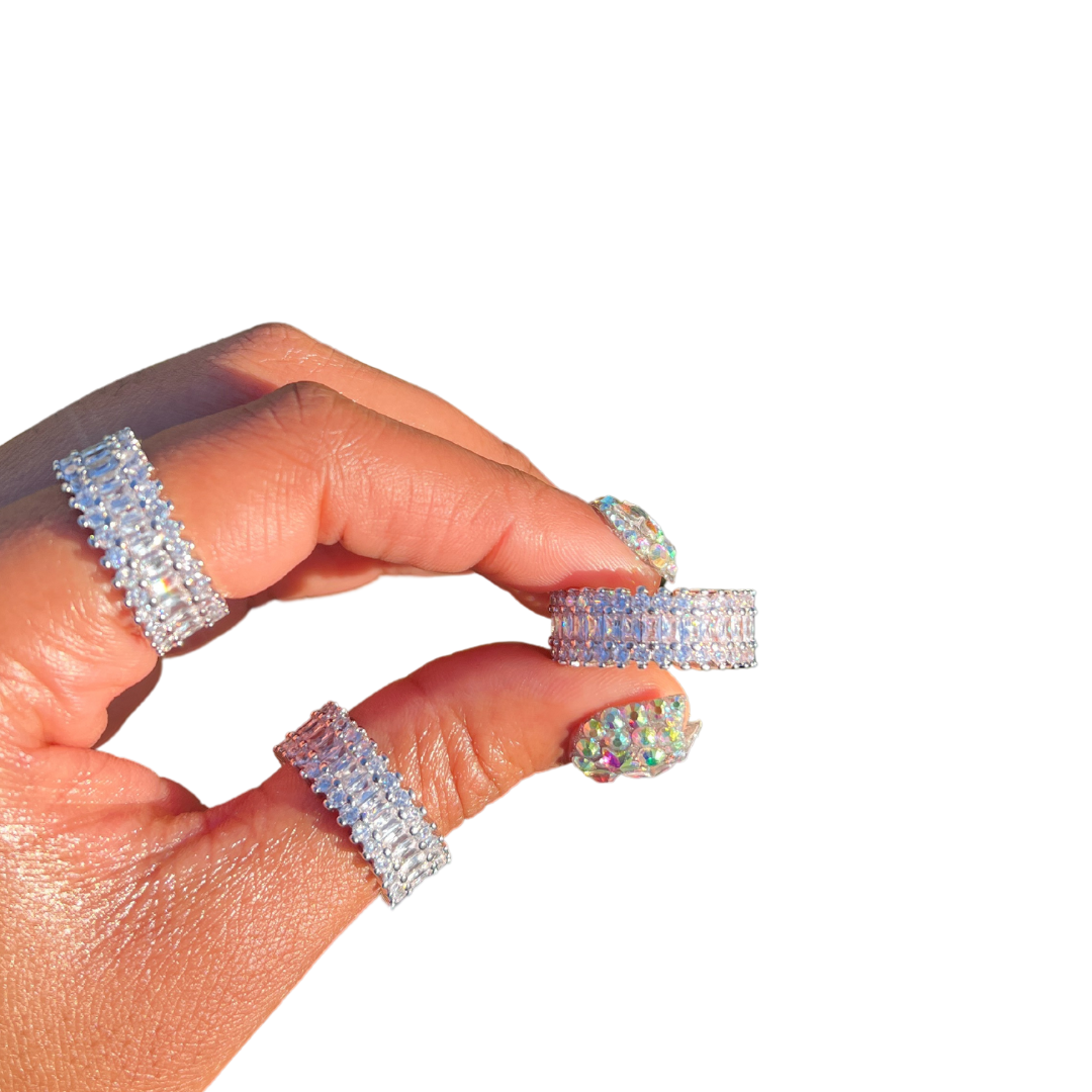 This ring features 3 rows of cubic zirconia stones with spiked outer stones.