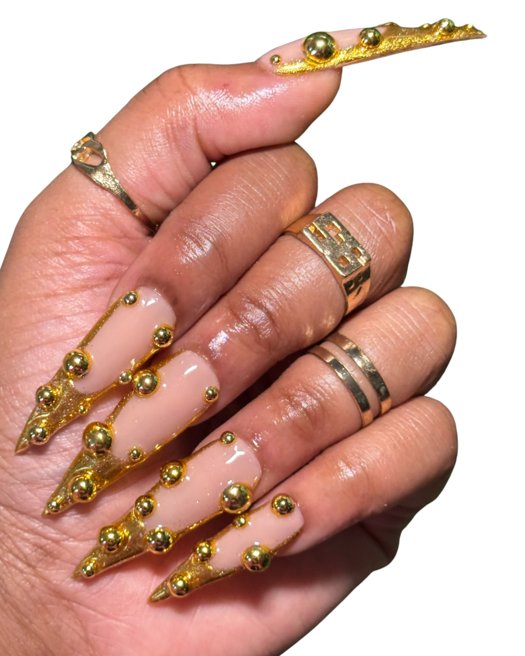 Obsessed! This metallic set is perfect for the fall. It features metallic french tips with metal bead accents