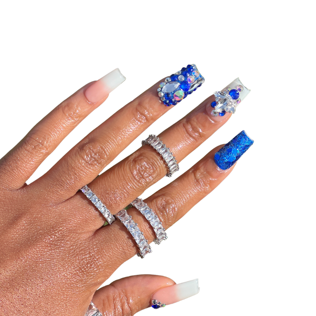 - 2 ombre nails with cuticle bling, 2 ombre' nails , 2 luxe charm nails with bling, 2 full bling nails, 2 sugar glitter mix nails