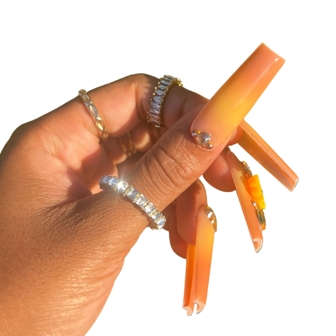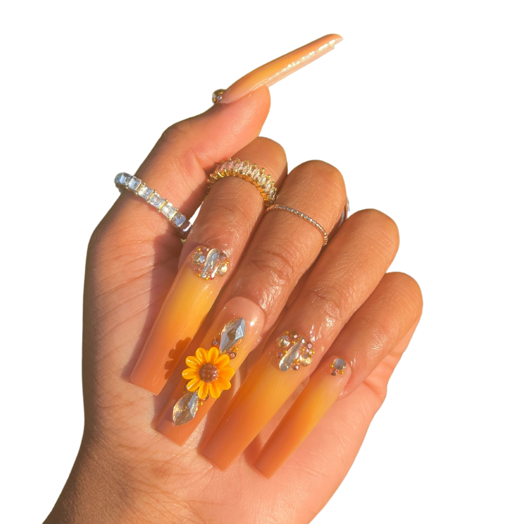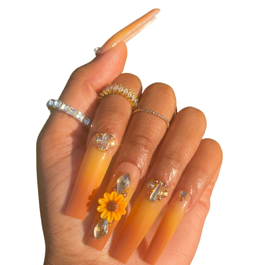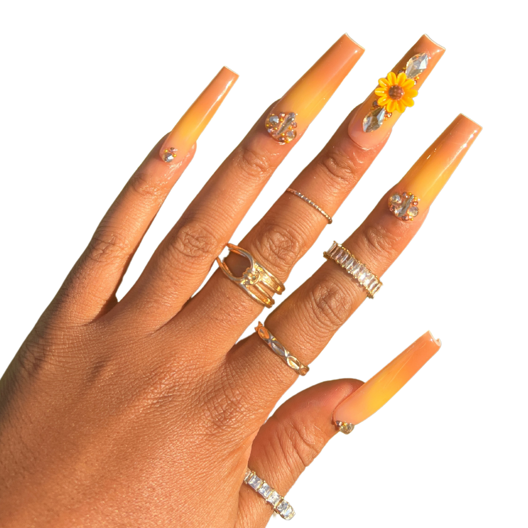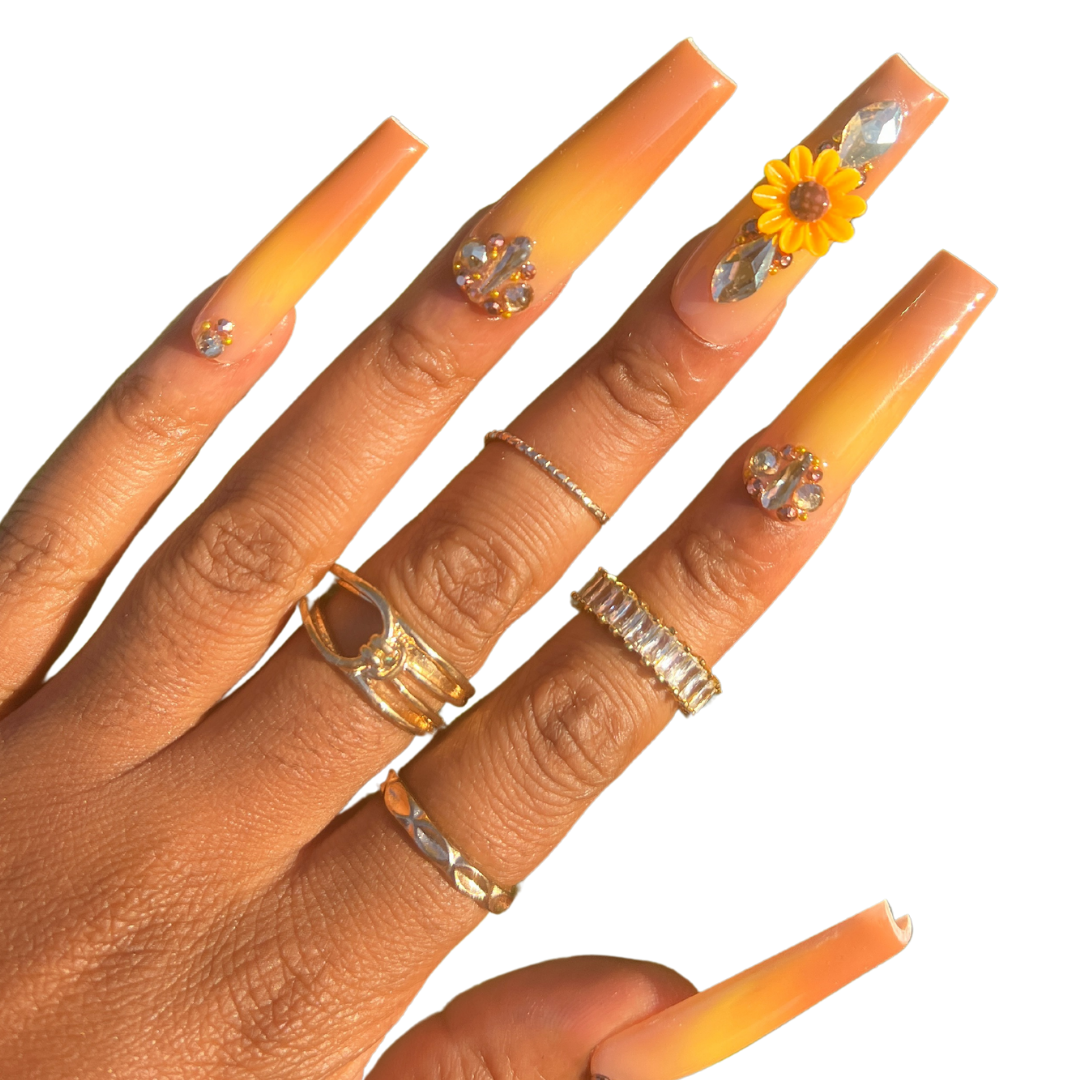 - 2 sunflower bling nails, 8 ombre nails with bling design8